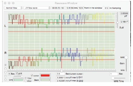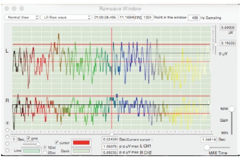 raw voltage scale is 0.19 μV p-p at red horizontal line to black horizontal line.
