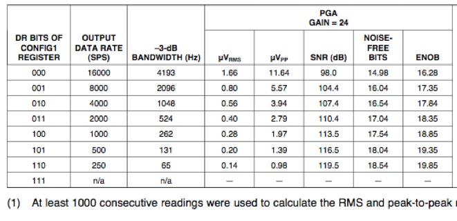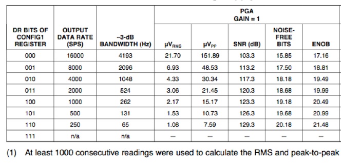 AD7173 is 2 bit (X 4) more noise free bit than ads1299 when 262 Hz band.